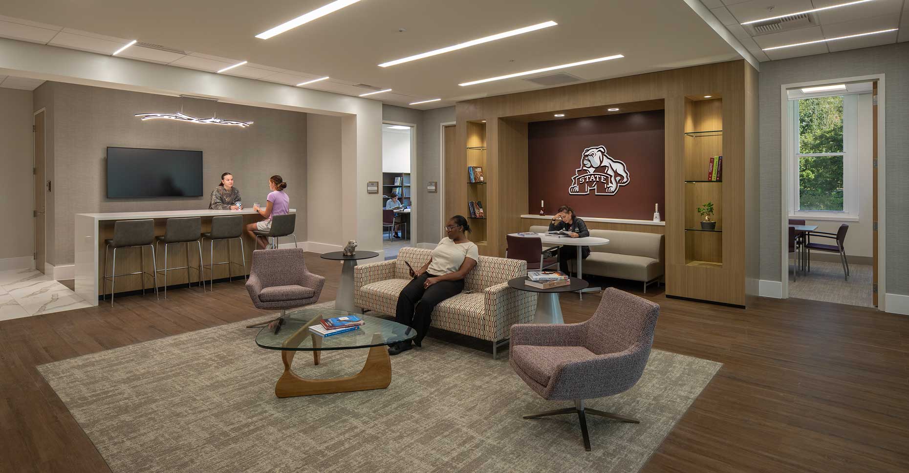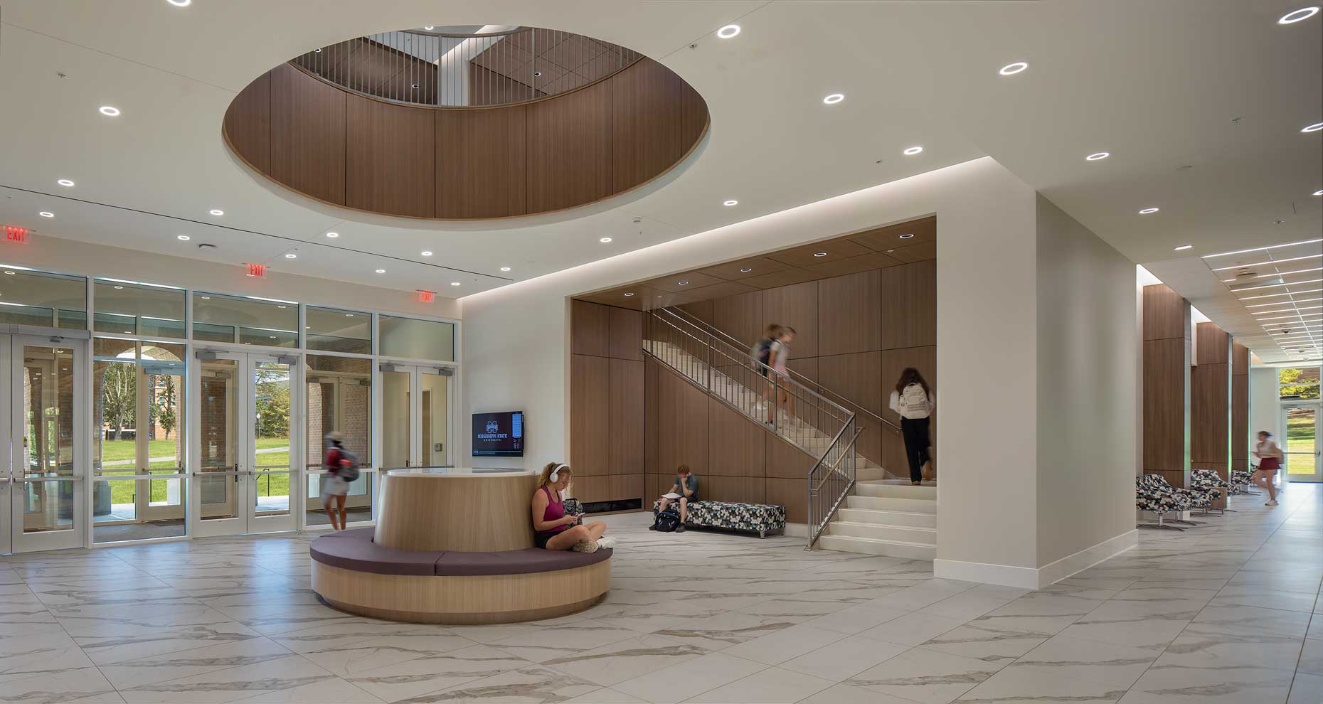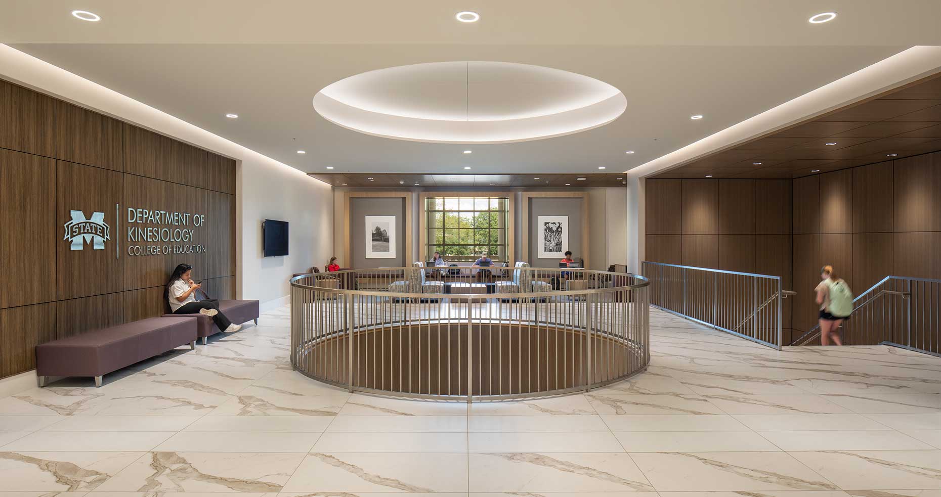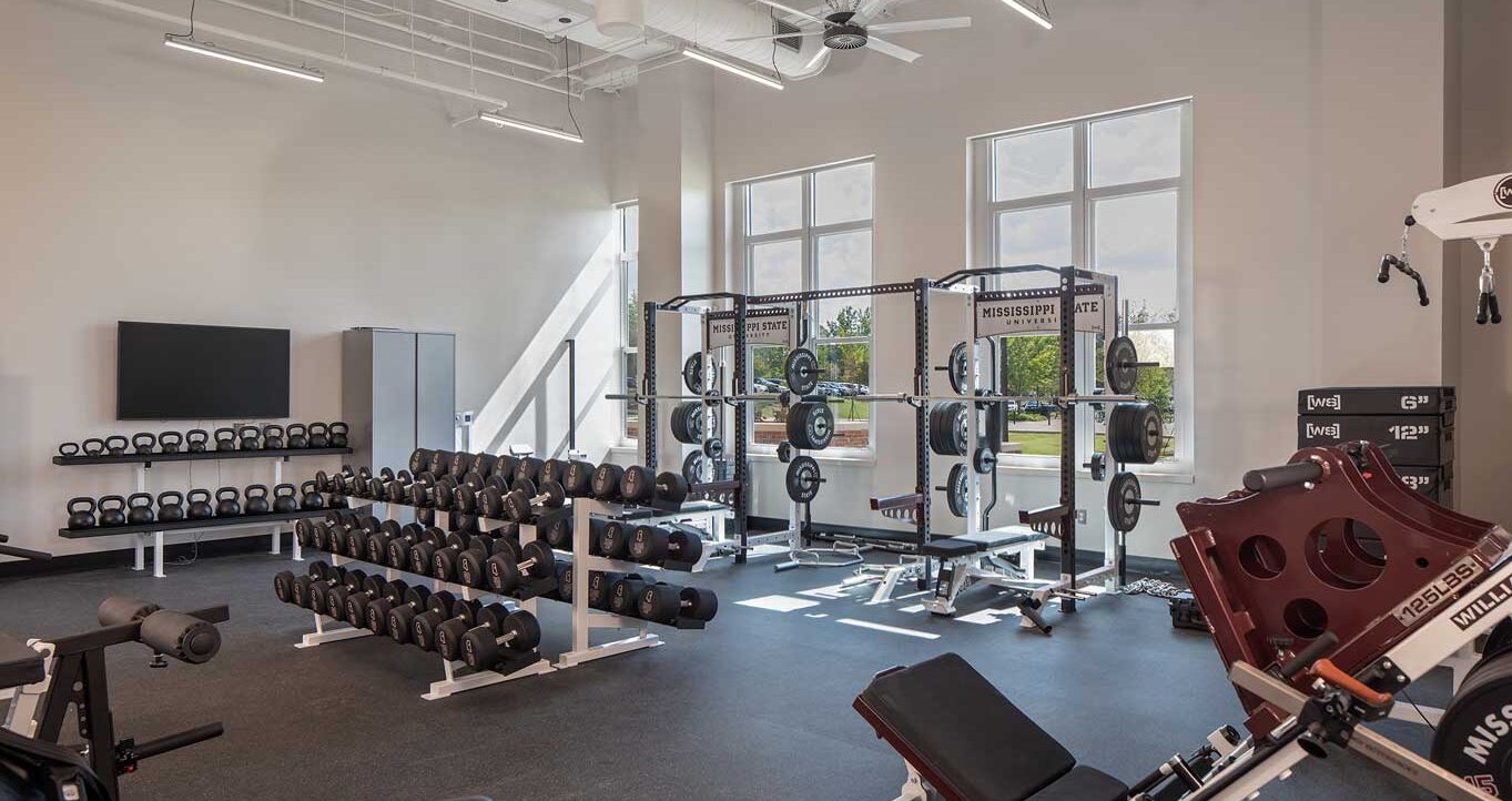 Construction of the new Jim and Thomas Duff Center included a centralized home for Mississippi State University’s Department of Kinesiology, and the Mississippi Institute on Disabilities, including the Autism and Developmental Disabilities Clinic and other programs of the Disability Resource Center. The 102,000-square-foot facility features a range of instructional and functional spaces, including multiple lecture-style classrooms, clinical areas, research laboratories, and administrative offices. The spaces were intentionally designed to resemble modern physical therapy environments rather than traditional classrooms or laboratories, providing students with practical, hands-on training in realistic clinical settings.